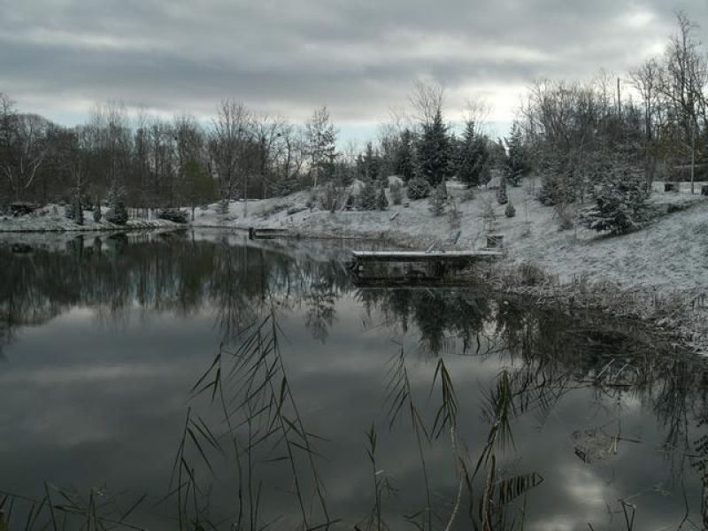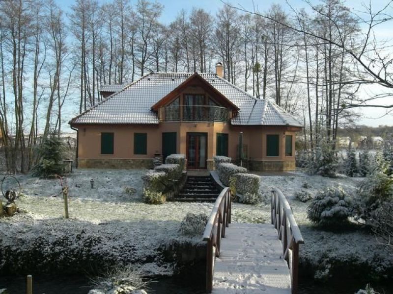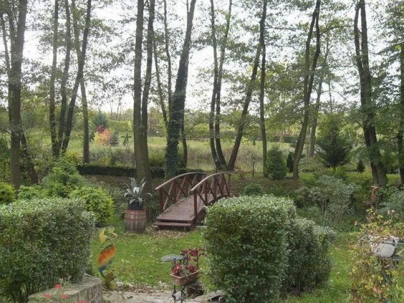 A három hektáros birtok közepén patak, mely mellett 5000 nm-es halastó található, telepített halakkal.