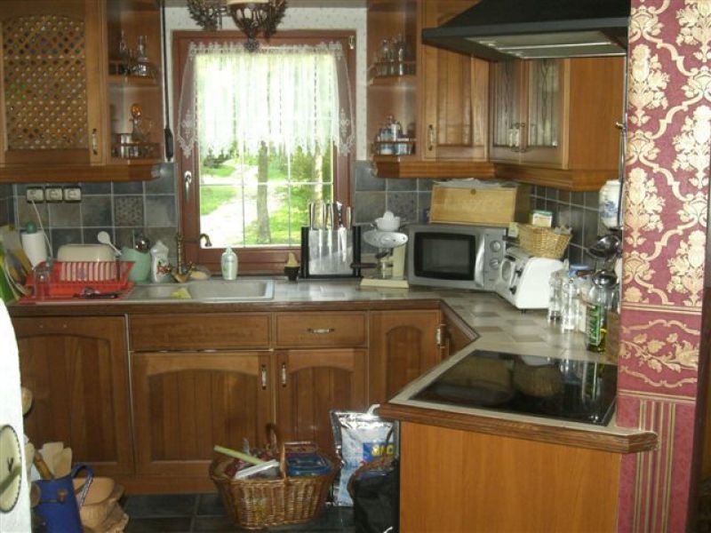 A vendégház közepén van a konyha, a csodaszép fafűtéses kemence-csikótűzhellyel. A konyhából nyílik a nagyszoba (25nm) saját fürdőszobával. A konyhából nyílik még a másik szoba saját fürdőszobával. Központi fűtés van az egész házban.