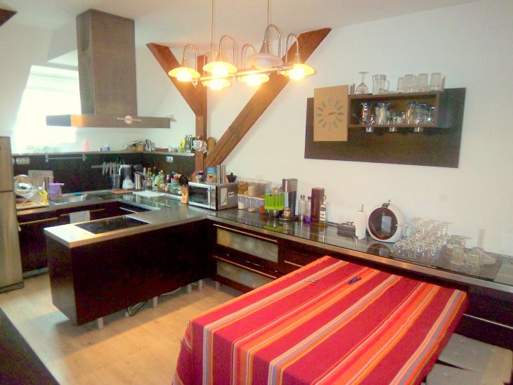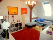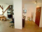 Budapest szívében a Nyugati téren 1876-ban épült 2009-ben teljes körű külső-belső felújításon átesett liftes társasházban 142 m2-es, belső kétszintes, igényes kivitelű tetőtér-beépített lakás eladó. A lakást ezidáig iroda-lakás kombinációként használták, de lehetőség van az irodarészből lakótér kialakítására is (nappali, háló). Teljes alapterület 135 + 7 m2 tároló, a hasznos alapterület 121 m2. A fűtésről kombicirkó kazán a hűtésről klímaberendezés gondoskodik. Az alsó szinten teljesen felszerelt konyha (nagyméretű hűtőszekrény, mosogatógép, kerámia főzőlap, páraelszívó, mosógép, konyhai eszközök) 6 személyes asztallal, 5 fős irodahelyiség (nappalivá alakítható), TV-szoba, Fürdőszoba káddal található valamint egy tároló, mely a fő