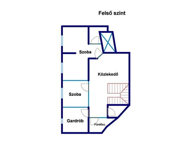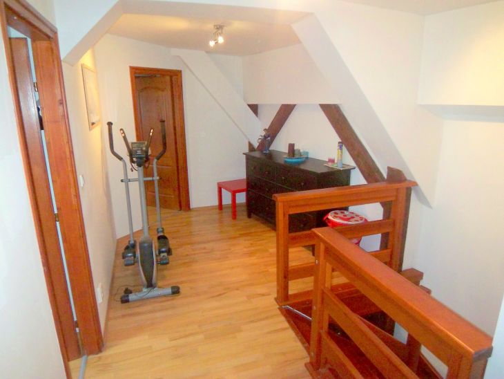 bejárati ajtó melletti külön zárható bejárattal közelíthető meg. A felső szinten hálószoba 1,60x2m-es franciaággyal, hálószoba két 1,30x2m-es ággyal, tágas gardróbszoba, WC, zuhanyzós fürdőszoba, és közlekedő kapott helyett kanapéval és egy edzőpaddal.