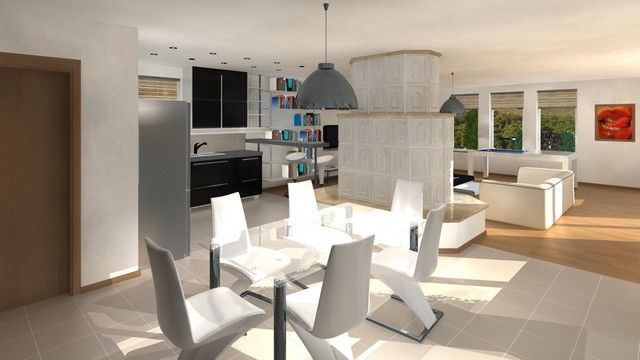 Fűtés: Gáz, padlófűtés; burkolat: járólap és parketta; parkolás: 2 nyitott beálló, 2 garázs az épületben