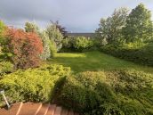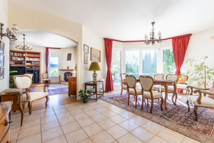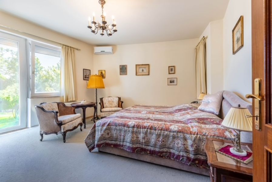 Az ingatlan gyönyörű, csöndes környezetben, az erdőhöz közel fekszik, 990 m2-es intim telken, kertvárosias lakóövezetben.