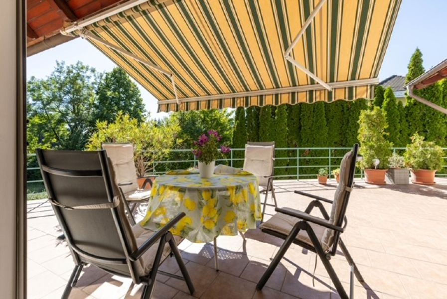 A 2000-ben épült, 2 generációs családi ház garázsszint (földszint), bejárati szint (emelet) + tetőtér beépítésű, gyakorlatilag 2 különálló lakást foglal magába. A ház benapozása tökéletes, déli tájolású, az emeleten hatalmas, 41,6 m2-es részben fedett terasszal, a tetőtérben pedig egy 16,2 m2-es terasszal, ahonnan minden este megcsodálhatjuk a naplementét, csodás körpanorámával a zsámbéki medencére.