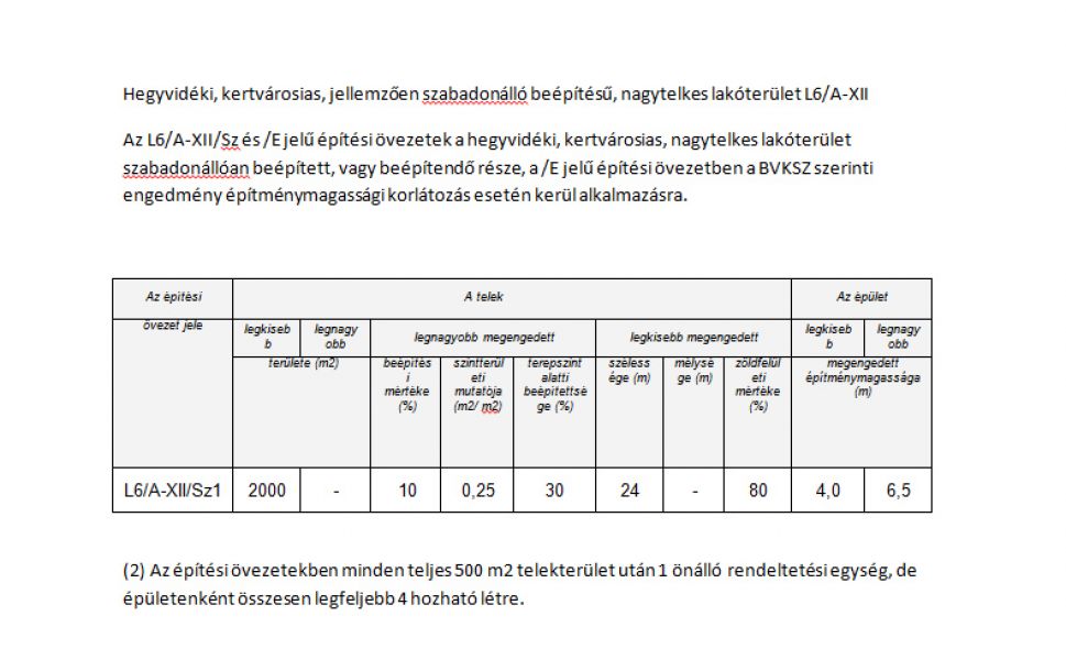 Telek mérete: 1061 m², alakja: Téglalap, utcafronti szélesség: 24 m, , utcára merőleges méret: 39 m, alakja: Téglalap, övezeti besorolás: L6A/XII/Sz1 , beépíthetőség: 10.00 %, építménymagasság, max.: 6.50 m, telek lejtése: 5.00 %.