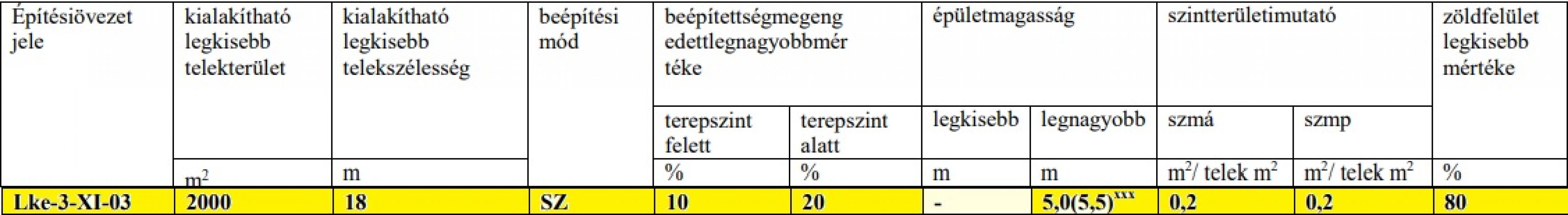 Telek mérete: 3491 m², alakja: Szabálytalan, utcafronti szélesség: 28 m, , utcára merőleges méret: 58 m, alakja: Szabálytalan, övezeti besorolás: Lke-3-XI-03 , beépíthetőség: 10.00 %, építménymagasság, max.: 5.00 m, telek lejtése: 5.00 %.