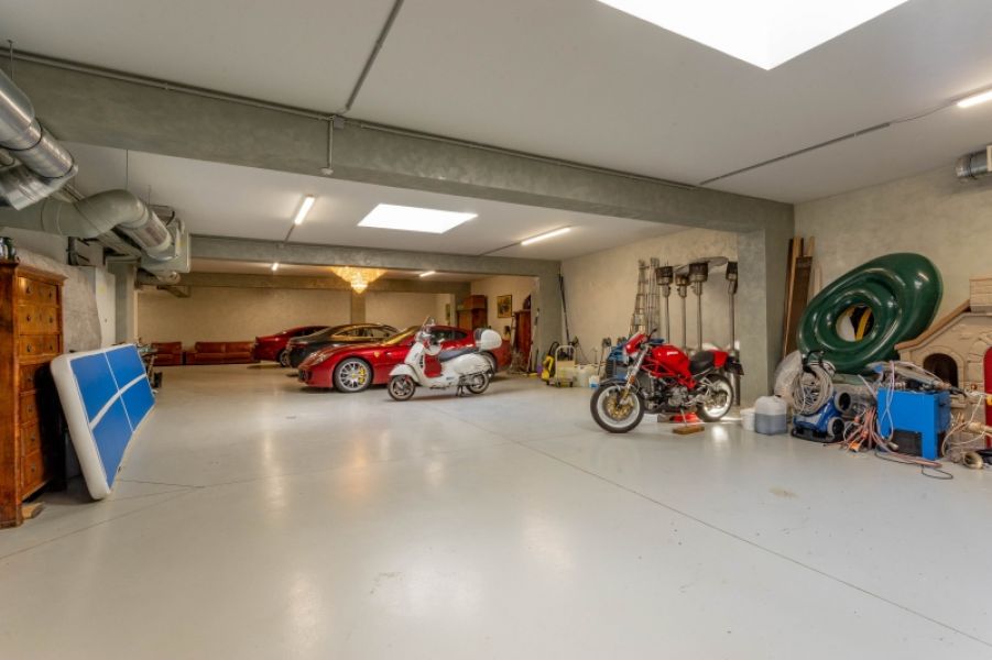 - directly next to the building, a 300 m2 indoor garage for 6-7 cars, a wellness section with a steam cabin and sauna built above it,