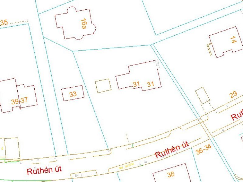 A telek mérete 1441 m2, mely ~egyenlő arányban oszlik meg a két fél közt.