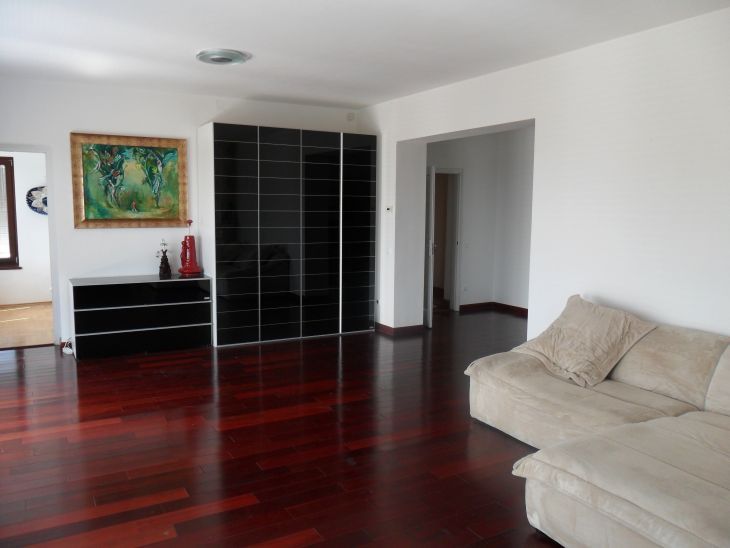 A jobb oldali fél kétszintes (2x130m2), gyönyörű városi panorámával rendelkezik. A mindkét szintjén minőségi burkolatokat, konyhát és tágas nappalit találhatunk. Az alsó szinten a különlegesen szép konyha mellett egy szaunával és jakuzzival ellátott fittness terem is található.