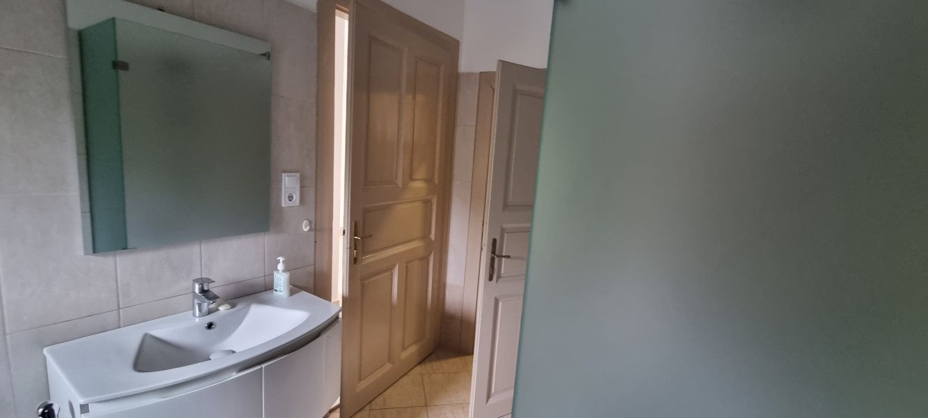 A 86 nm-es alagsor külső lépcsőn megközelíthető. A padlástér 90 nm-es, jelenleg nincs beépítve.