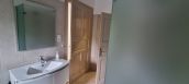 Lakószintje 104 nm-es, tágas étkezőkonyha, nappali, 2 hálószoba, fürdőszoba, külön mosdó és félköríves előtér van.